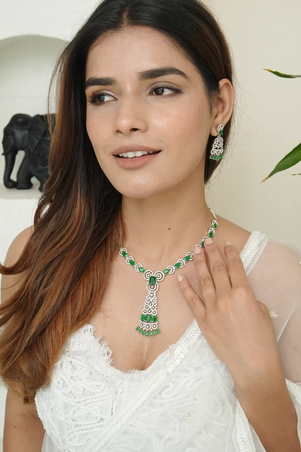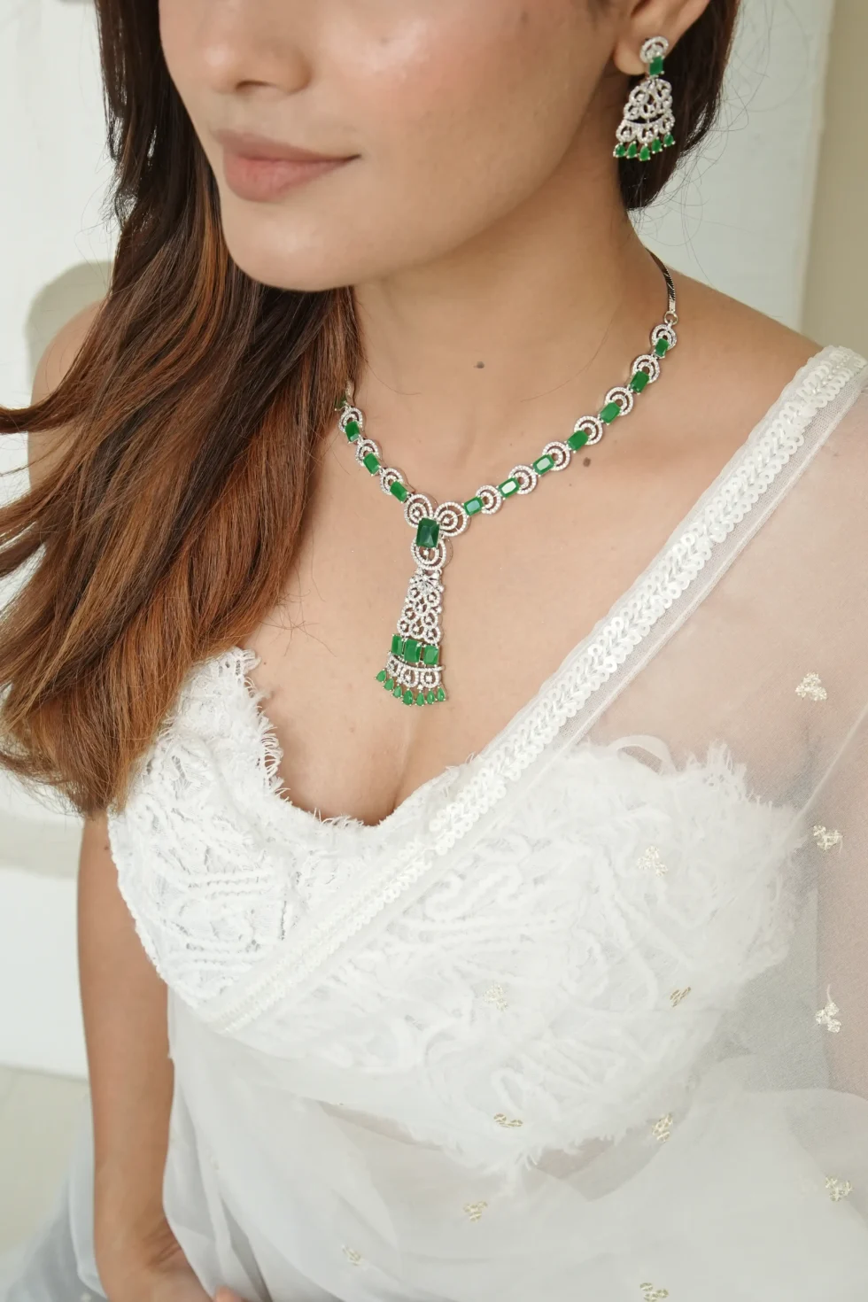 American Diamond with Doublet Stone Cut designer Necklace Set