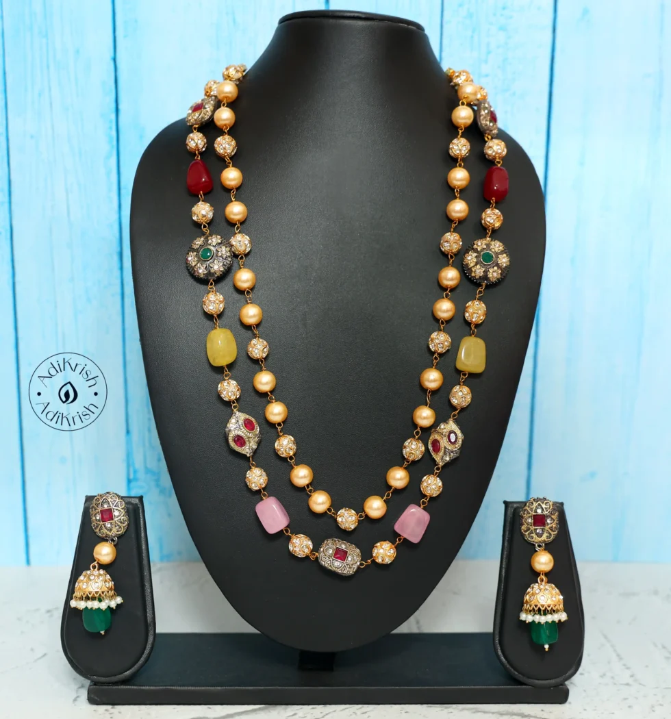 Double Layered Multicolor Kantha With Earrings