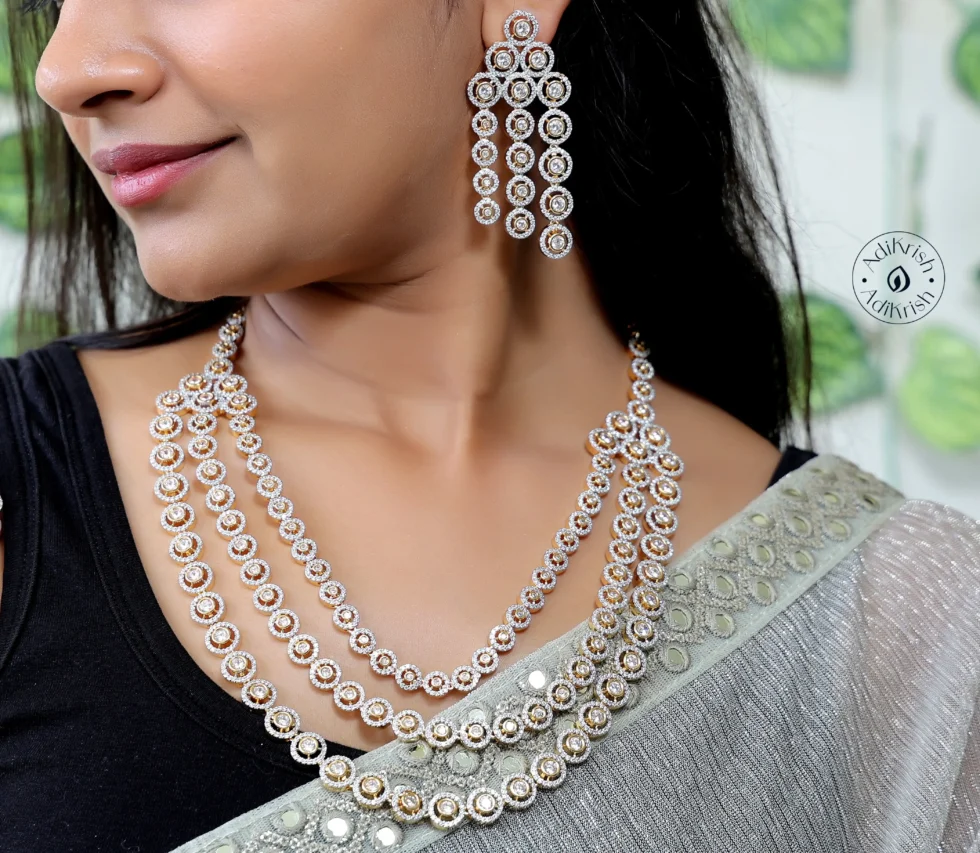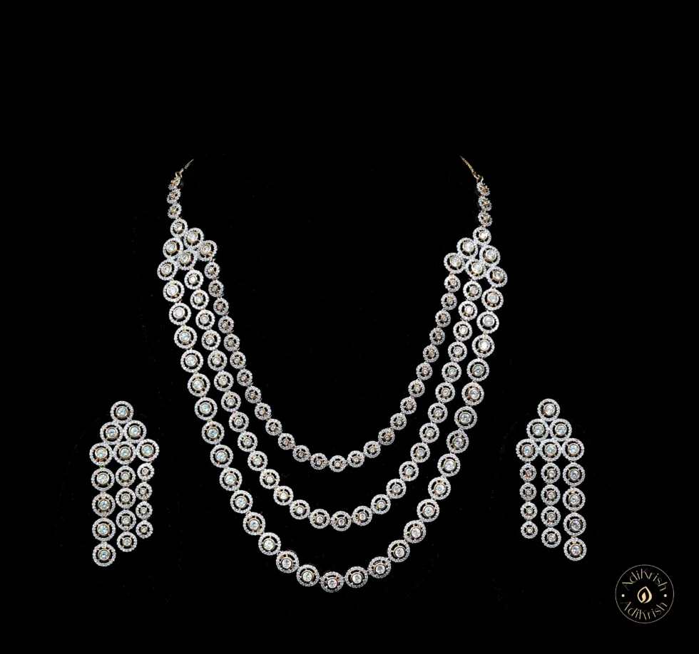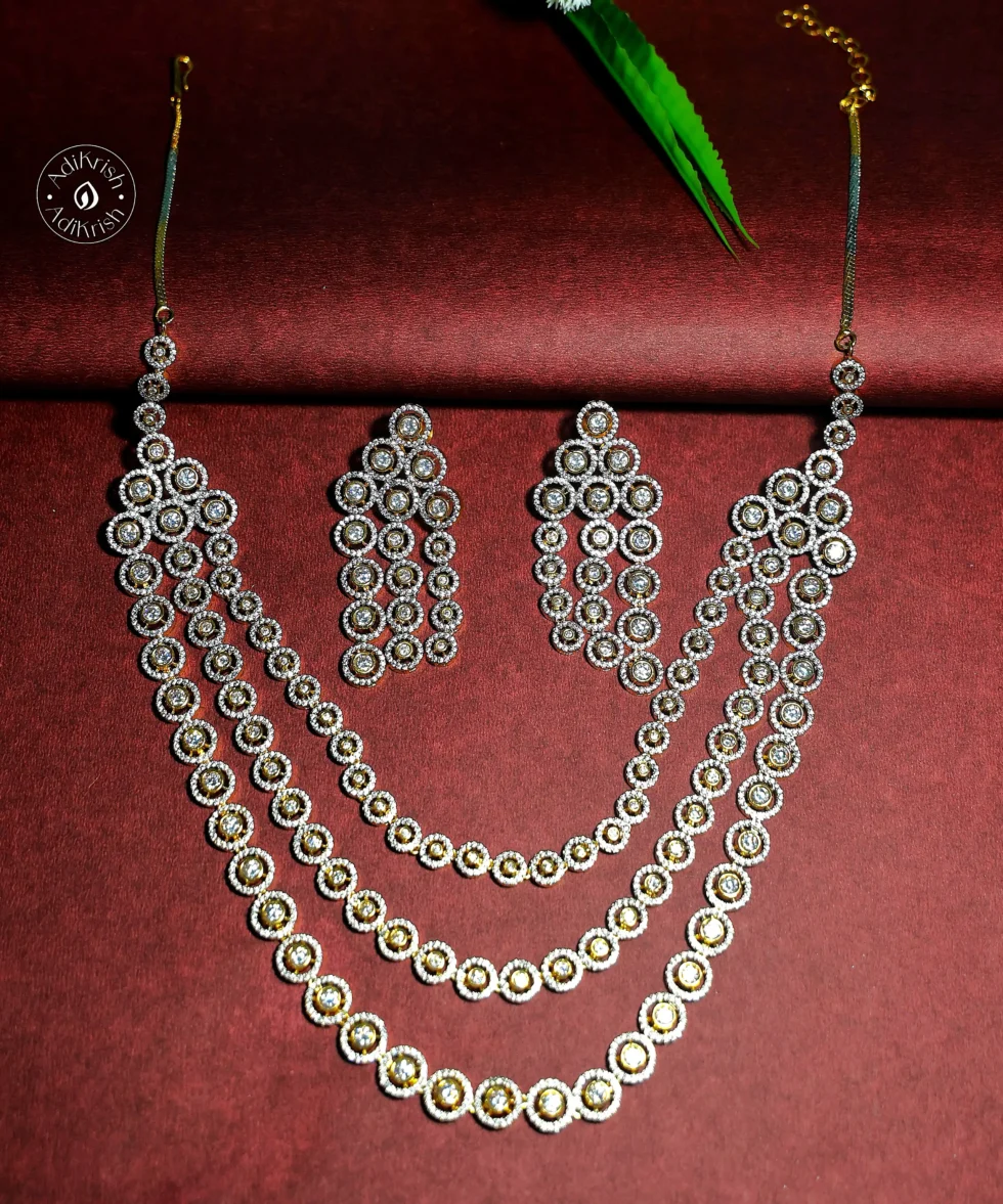 Gold Plated Three Layered American Diamond Necklace Set