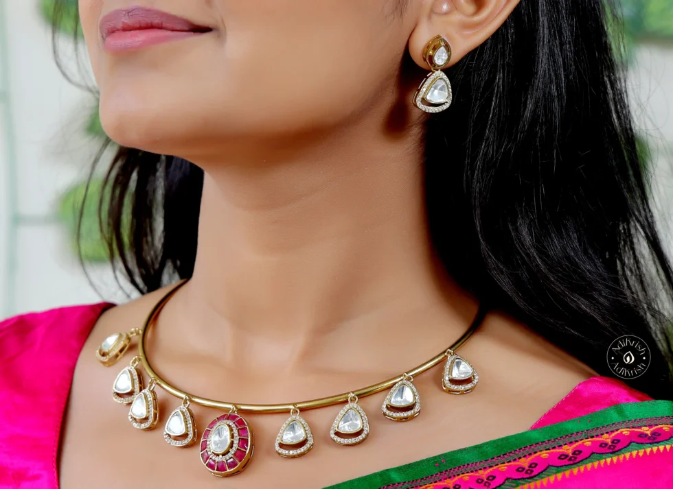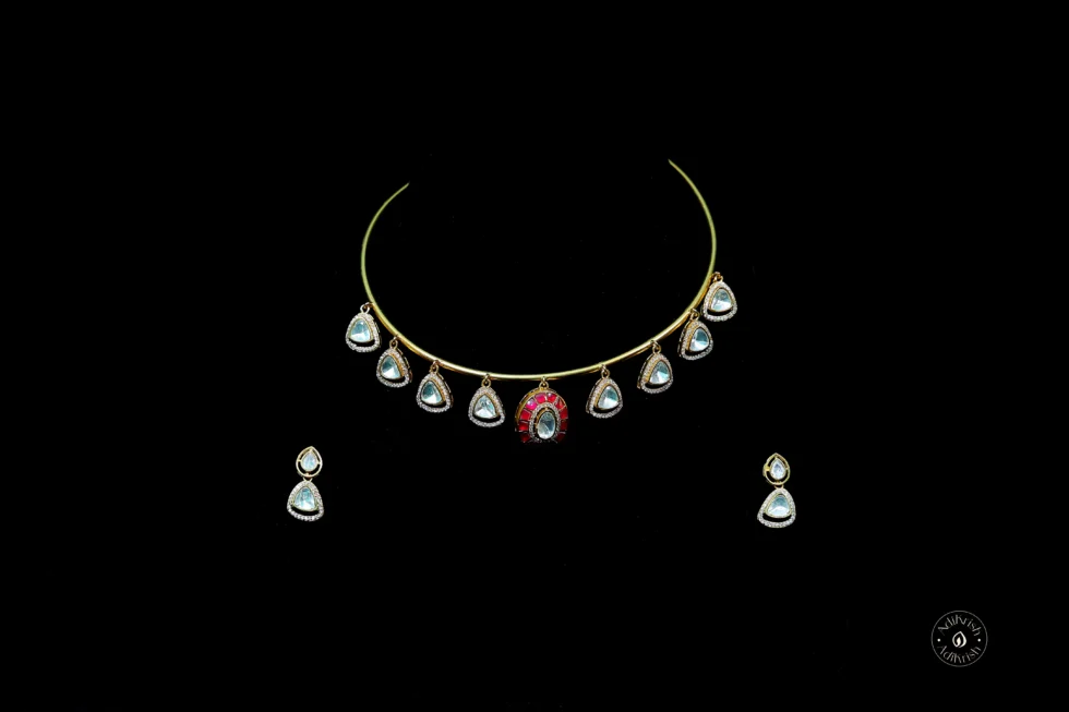 Hasli Red Kundan Embellished Gold Plated Necklace Set