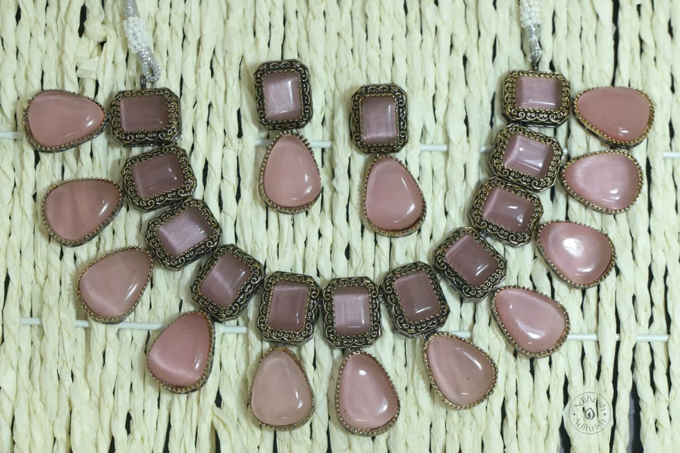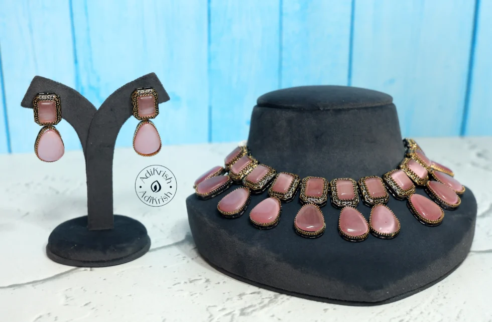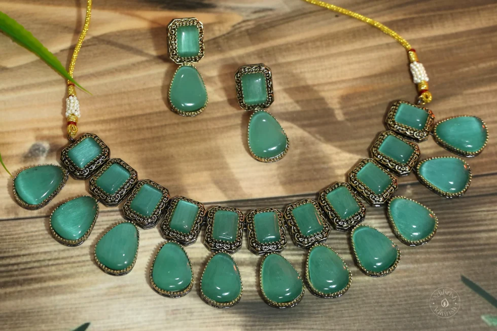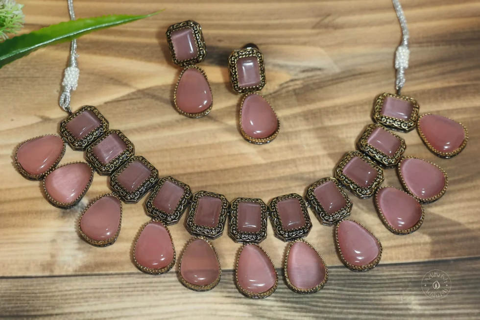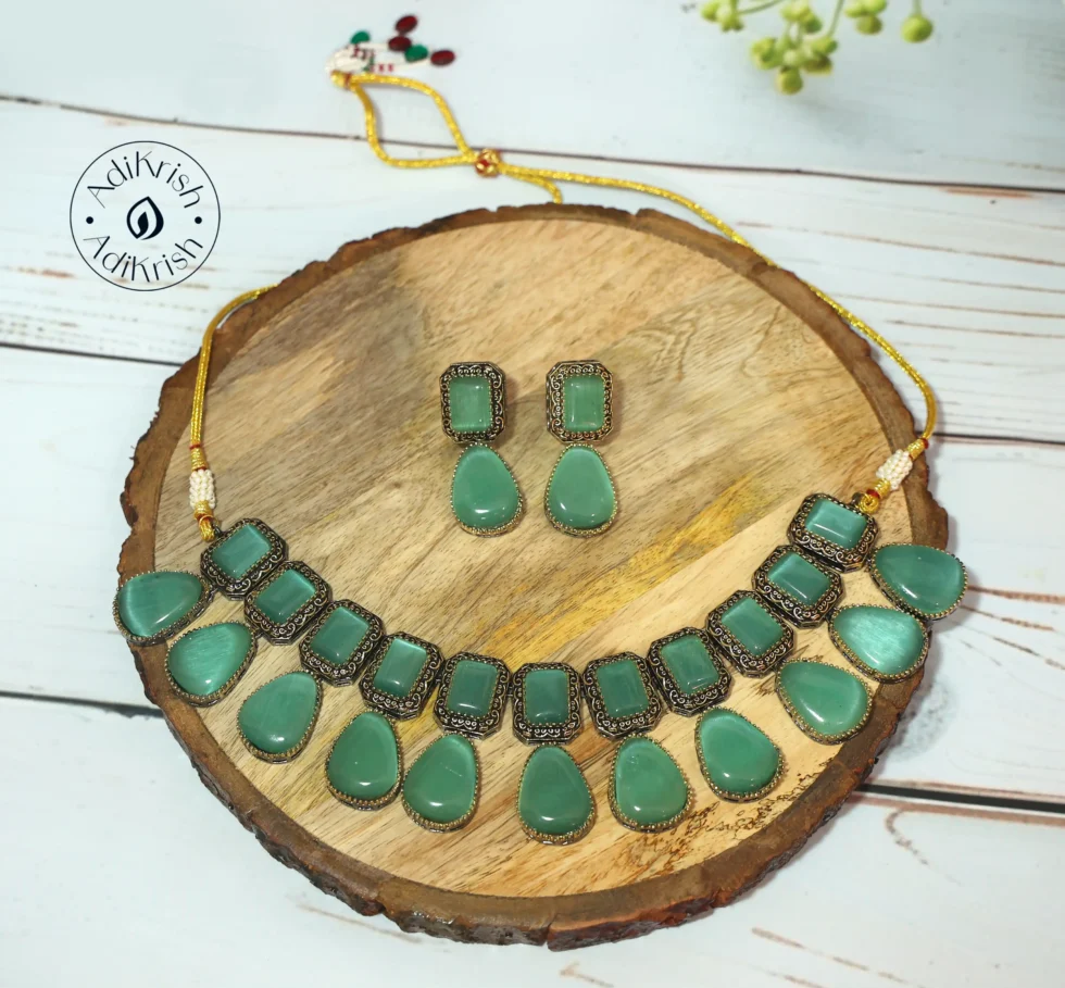 Oxodised Plated Pota Stone Necklace Set